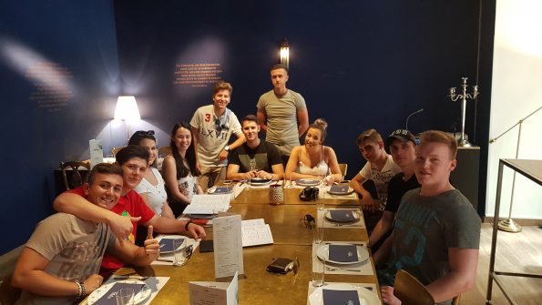 Und schon sitzt die 2 F mit ihrer Lehrerin, Frau Mag. Pausch, am goldenen Tisch des Lokals Habibi & Hawara in der Wipplingerstraße und erfährt von der Marketingexpertin, Frau Katharina Schinkinger, viele Details über das Entstehen (Flüchtlingskrise 2015) und die Zukunft (Expansion neuer Lokale, Catering, Belieferung von Handelsketten, Upcycling, Ausbildung von Lehrlingen, Partizipation von Geflüchteten als echte UnternehmerInnen…) dieses Social-Franchise-Systems und die Finanzierung durch Crowdfunding.