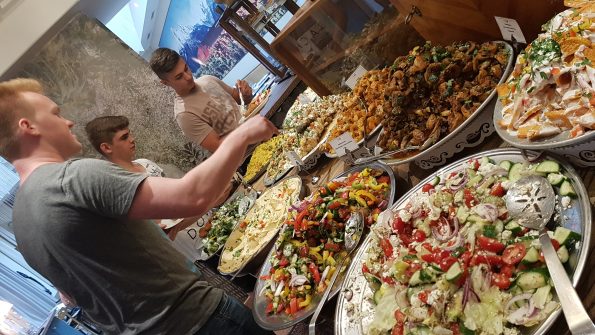 Nach dem interessanten Vortrag stärken wir uns am köstlichen Buffet und freuen uns, mit Bundespräsident Alexander van der Bellen und UN-Generalsekretär Ban Ki-Moon am selben Tisch zu sitzen – wenn auch nicht zeitgleich, so doch am goldenen.