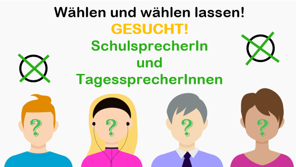 Schuldemokratie leben!WANTED! Die Wahlen zur SchulsprecherIn bzw. zum Schulsprecher, zu den TagessprecherInnen und deren VertreterInnen stehen vor der Tür! Wir suchen – nein, IHR! sucht – engagierte SchülerInnen und Schüler, die bereit sind, für das Amt der SchülerInnenvertretung zu kandidieren! Alle, die das Amt einer SchülerInnenvertretung selbst übernehmen möchten, aber auch diejenigen, die geeignete KandidatInnen…