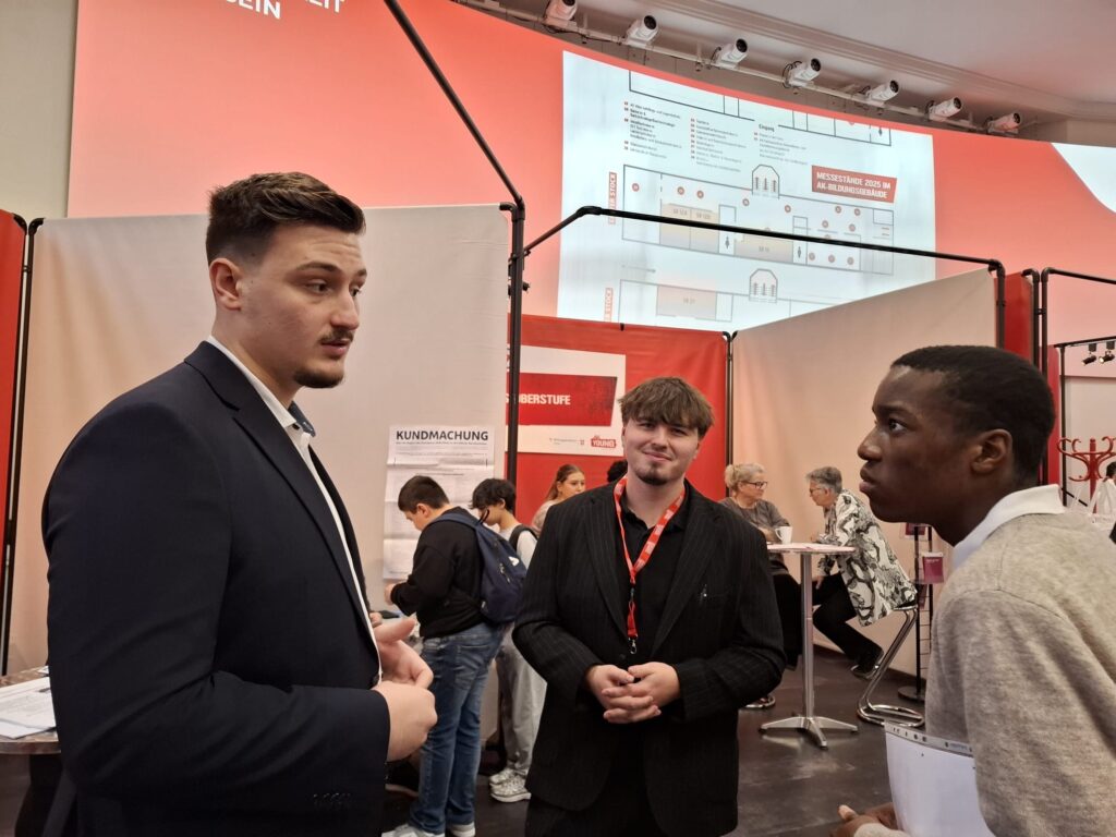 Am 14. November 2025 war es wieder soweit – aktive Lehrlinge beraten Orientierung– und Information-Suchende am Stand der Wiener Berufsschulen auf der L14 AK Bildungs- und Berufsberatungsmesse.